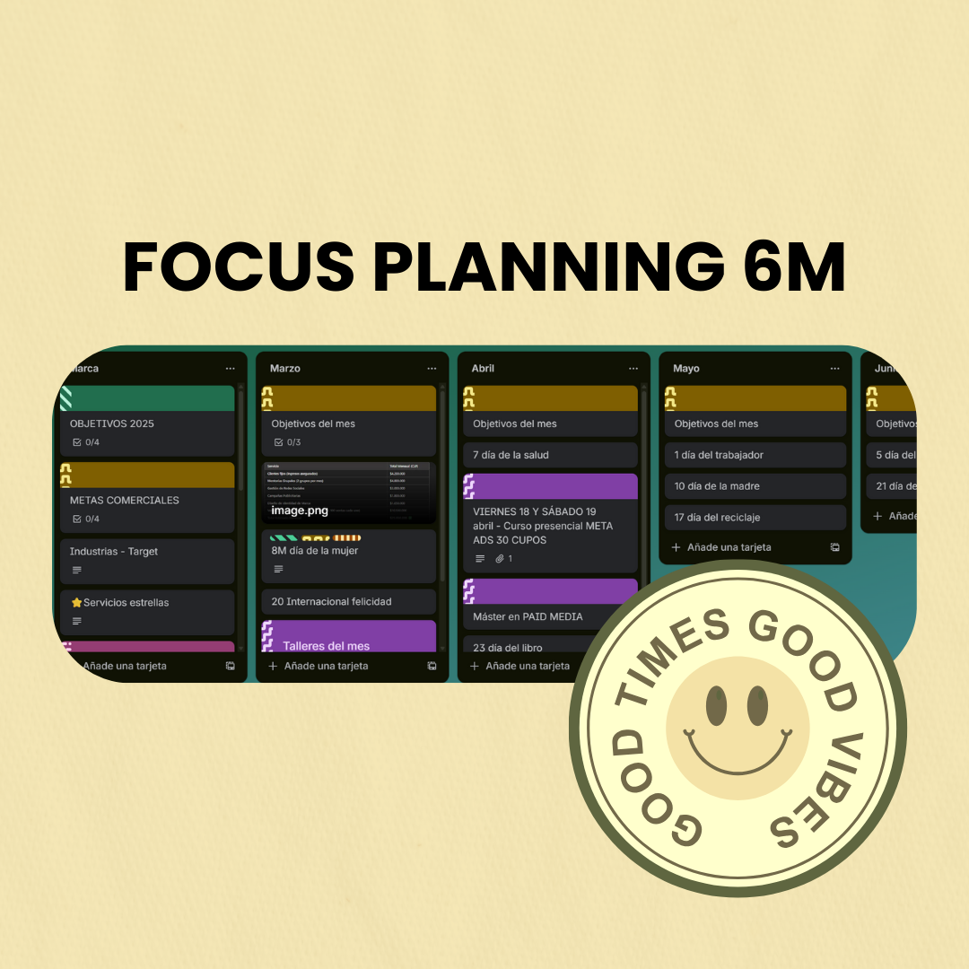 En una sola sesión estructuramos tu semestre completo en Trello para que sepas exactamente qué hacer, cuándo hacerlo y cómo avanzar con foco ,sin caos, sin improvisación y con una estrategia clara que sostiene tu crecimiento.